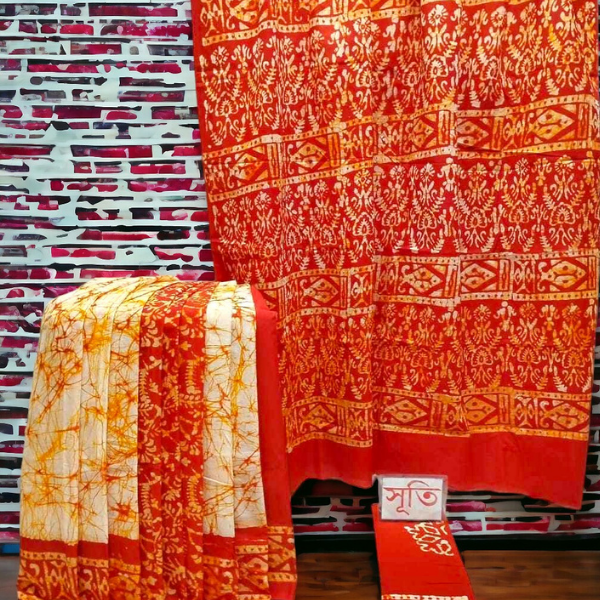 পণ্যের নাম: মোম বাটিক প্রিমিয়াম কোয়ালিটির সুতি শাড়ি (ম্যাচিং ব্লাউজ পিস সহ)